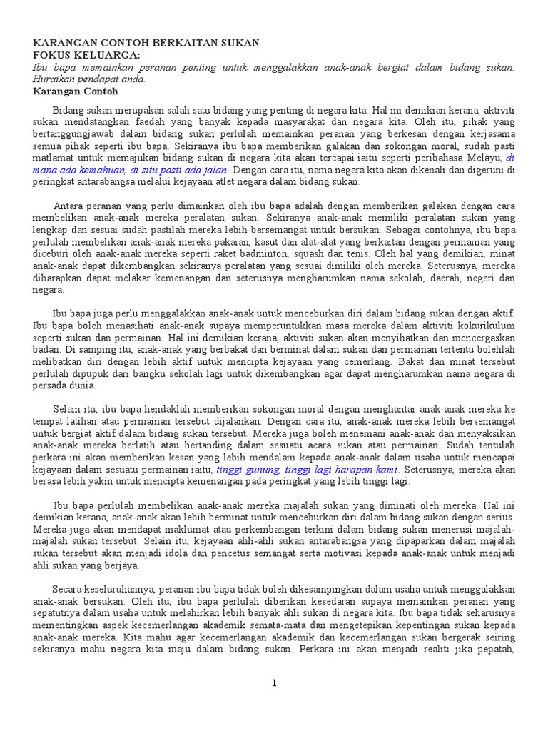 Contoh Karangan Berkaitan Sukan Pdf